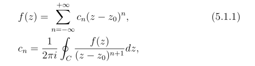 定义1 设函数f(z)在其孤立奇点z0(z0 ∞)处的去心邻域的洛朗级数为式(5.1.1).