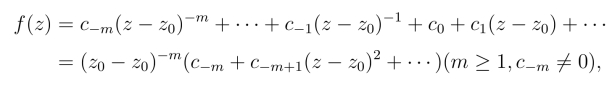 如果z0为f(z)的m级极点,f(z)在z0 的去心邻域0 <|z-z0| <δ内的洛朗级数为