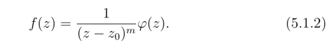 反之,若存在在点z0解析的函数φ(z)且φ(z0)0,使式(5.1.2)成立,则z0是f(z)的m级极点.