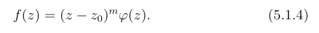 易见,z0为f(z)的m级零点的充分必要条件为存在解析函数φ(z),且φ(z0)0,函数f(z) 在z0 的某邻域内能表示成