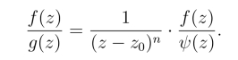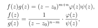 (1) 当z0分别为f(z)和g(z)的m,n级零点时,z0为f(z)g(z) 的m+n级零点,若m <n,则有z0为的n-m级极点.