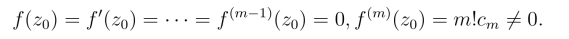 反之,若f(z)在z0解析,f(z0)=f′(z0)=···=f(m-1)(z0)=0且f(m)(z0)0,设f(z) 在z0 的邻域内的泰勒级数为
