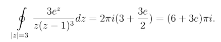 解 z =0为被积函数f(z)=的一级极点,z =1 为f(z) 的三级极点,例1(1)中已算出