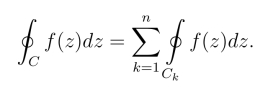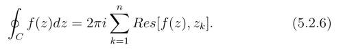 定理1(留数定理) 若函数f(z)在正向简单闭曲线C上处处解析,在C 的内部除有限个孤立奇点z1,z2,··· ,zn外解析,则有
