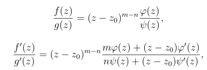在复变函数中,对一些未定型的极限可使用复变函数的洛必达(L’Hospital)法则.