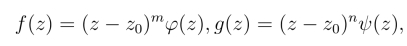 证明设z0分别为f(z)和g(z)的m,n级零点,则有