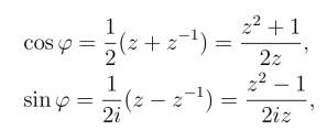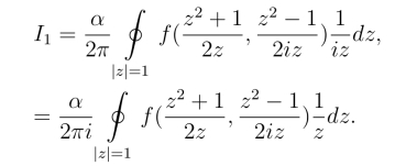 其中φ可看作圆周|z|=1的参数方程的参数.于是令z =eiφ(0 ≤φ ≤2π),则有dz =izdφ,且有
