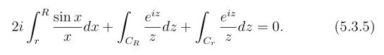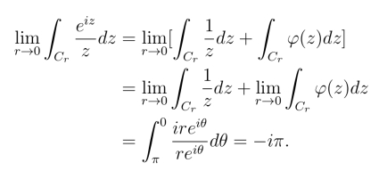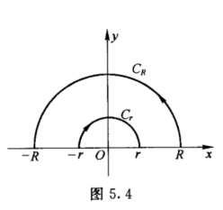 的一级极点,它在实轴上.为了使积分路线不通过奇点,我们取如图5.4所示的路线.由柯西积分定理,有