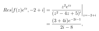 解 函数f(z)eiz =在上半平面内只有一个简单极点z =-2+i,且
