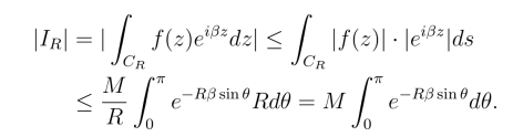 由于当|Z|≥r时有|f(z)|≤M/|z|,因此,当R ≥r时记沿CR的上述积分为IR,有
