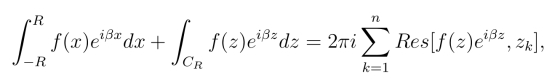 定理3 设函数f(z)在实轴上无奇点,且在上半平面除有限个奇点z1,z2,··· ,zn外解析,若存在正数M和r,使当|z|≥r且Imz ≥0 时,函数f(z)解析且有