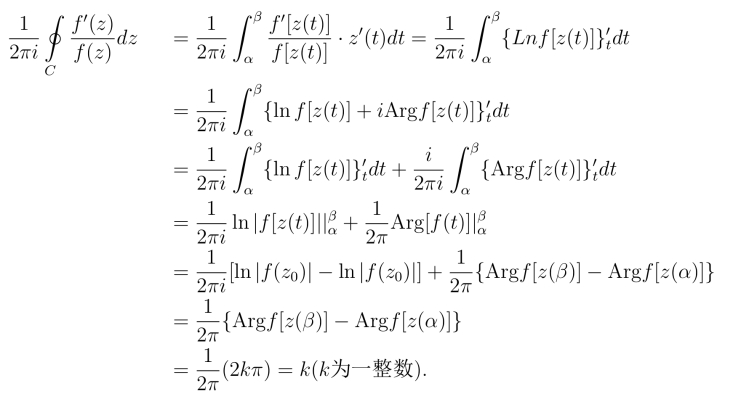 即当f(z)在简单闭曲线C上及C内解析且在C上不等于零时,f(z)在C内零点的个数等于乘以当z沿C的正向绕行一周f(z)的辐角的改变量.