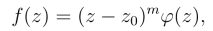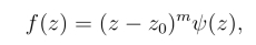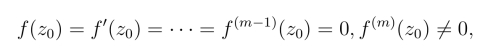 其中ψ(z)在z0点解析,并且ψ(z0)0,则称z0为f(z)的m级零点.给出了z0为f(z)的m级零点的充要条件为