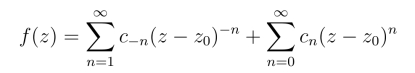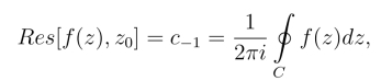 其中C为去心邻域0 <|z-z0|<R内的任意一条正向简单闭曲线,c-1为f(z)在该去心邻域内的洛朗展开(z-z0)-1的系数.