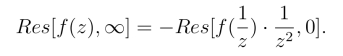 如果z =∞为f(z)的孤立奇点,那么f(z)在z =∞的留数