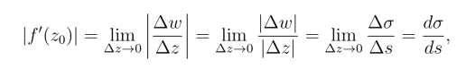 2)伸缩率的不变性 即通过z0的任何一条曲线的伸缩率均为|f′(z0)|而与其形状和方向无关.