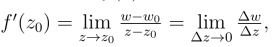 设z0 = z(t0),z = z(t0 + Δt),又设曲线C上从z0到z的曲线弧在映射w = f(z) 下变为Γ上从点到w0到w的曲线弧