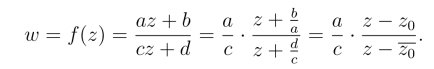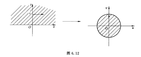 即它把实轴映射为单位圆周,且把上半平面的点z0映射成圆心w = 0,因此由边界对应原理,它必将Imz >0映射成|w|<1.
