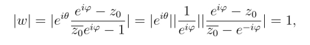 反之,该映射必将上半平面Im(z) >0映射成单位圆|w| <1.这是因为当取z =x(实轴上的点)时有