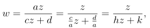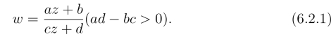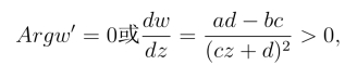 反之,对任意一个公式线性映射w = 其中a,b,c,d是实数,只要ad-bc >0,它必然将上半平面映射成上半平面.