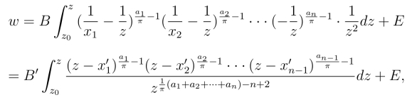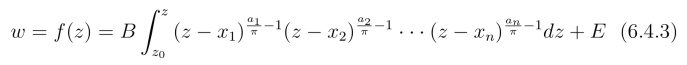 从而得到把z平面映射成多角形区域的映射为