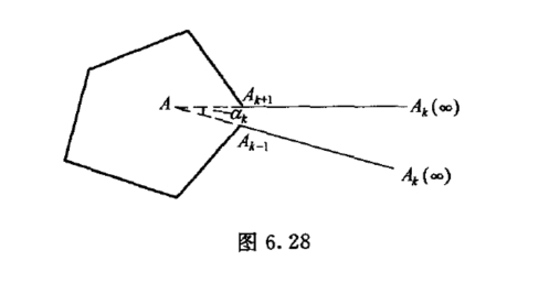 在实际问题中,多角形往往是变态多角形,就是说,它的顶点有一个或几个在无穷远.例如,Ak在无穷远,即wk =∞如图6.28所示.