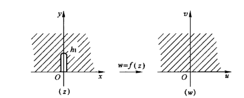10.求一一对应的保角映射ω = f(z)使带有割痕l的上半z平面映射为上半ω 平面,如下图.