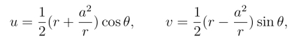 (2)*它把圆周|z| = a映射为线段v = 0,-a ≤u ≤a,并且把区域|z| >a映射为割去该线段的ω平面;又把区域|z|>a,Imz >0 映射为Imω >0.