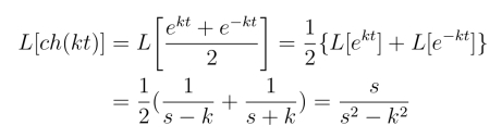 例1 利用线性性质求函数f(t)=ch(kt) 的拉氏变换.