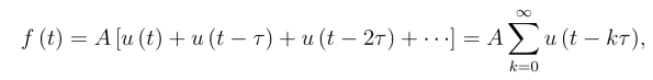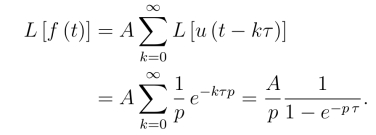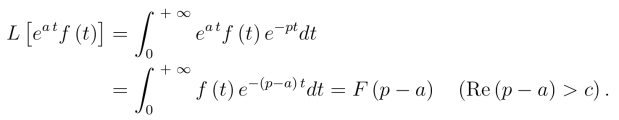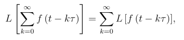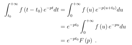 两边取拉氏变换,并假定右边的拉氏变换可以逐项进行.事实上,对满足拉氏变换存在定理条件的函数f(t)及τ >0,都有