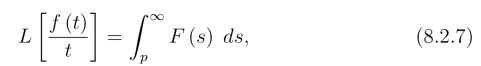 解 因为L[sin t]= 由象函数的积分性质(8.2.7),得