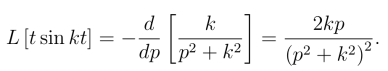 例4 求函数f(t)=t sin kt的拉氏变换.