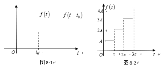 延迟性质也称时移性质.f(t-t0) 与f(t)相比,f(t)是从t = 0开始有为非零数值,而f(t-t0)是从t = t0 开始才有为非零数值,即延迟了一个时间t0.如图8-1.