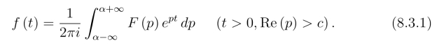 这就是从象函数F(p)求它的象原函数f(t)的一般公式,我们称(8.3.1)右端的积分为拉氏反演积分.它和(8.1.1)式F (p) =成为一对互逆的积分变换式,也称f(t) 和F(p)构成了一个拉氏变换对.