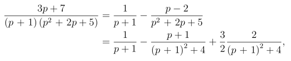 求有理函数的拉氏逆变换,有时可以先把有理函数分解为部分分式,把求较复杂的函数的逆变换,化为几个较为简单的函数逆变换的和.