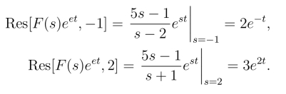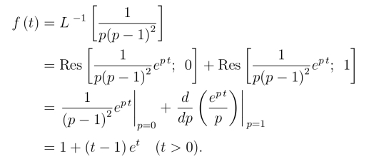 解 p1 = 0,p2 = 1分别是F (p)ep t 的一阶极点和二阶极点.由留数计算方法,