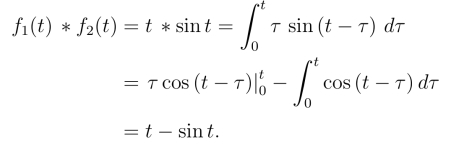 例1 求f1(t) =t与f2(t)=sin t的卷积.