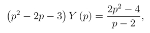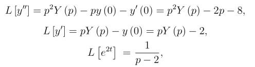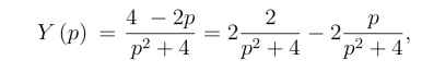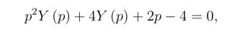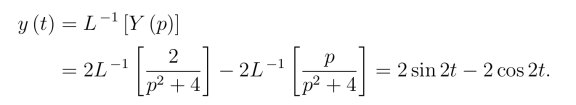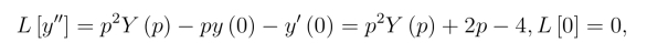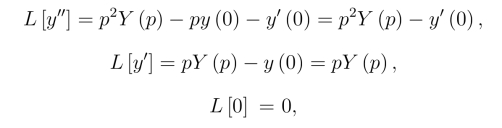 2° 对方程进行拉氏变换,利用拉氏变换的线性性质,微分性质(连带着初始条件)等,得到一个关于象函数Y (p) 的代数方程;