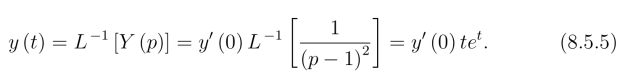由于y′(0) 为常数,(8.5.4)两端取拉氏逆变换,得
