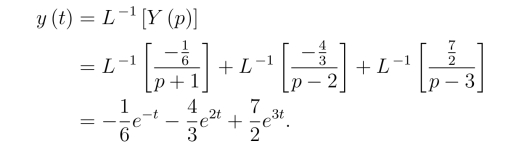 1° 设方程的未知函数y =y(t)的拉氏变换为L[y(t)] = Y (p);