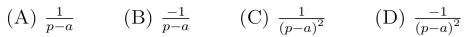 (A) Re(p)>a (B) Re(p)>-a (C) Re(p)>0 (D) Re(p)<-a