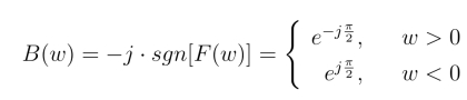所以B(w)是一个的相移系统,即希尔伯特变换相当于一个的相移,对正频率产生 的相移,对负频率产生π 2的相移,因此希尔伯特变换又称为90°相移器.