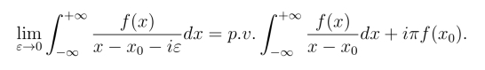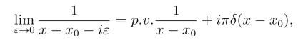 其中p.v.是函数的柯西主值,δ(x-x0)是狄拉克δ函数,它是一个理想化的函数,对任意的连续函数f(x),具有如下性质: