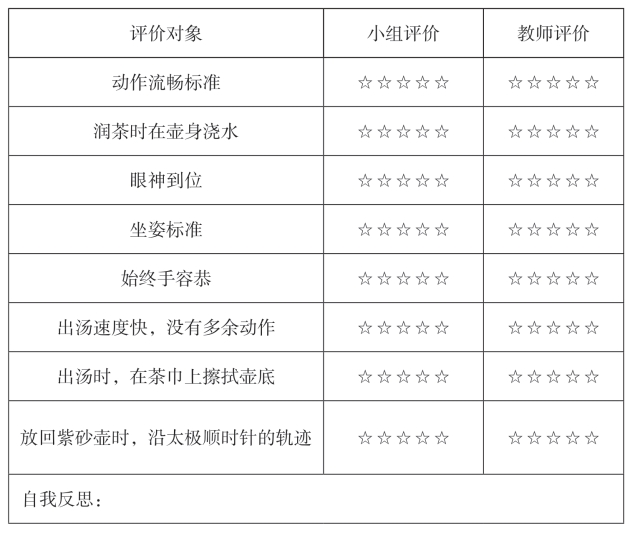 教师:同学们,喝了自己亲手泡的茶,感触真多。通过今天的学习,你们对紫砂壶行茶十式的认识更深入,动作更熟练了,大家开心吗?回家后可以给父母泡茶,表达对他们的感谢。父母喝了你们为他们泡的茶,会有何感受呢?