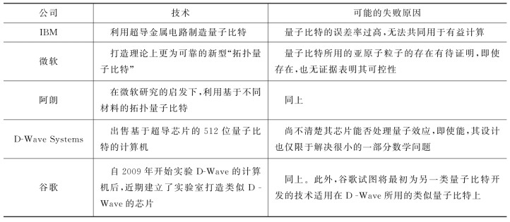 发达国家正在经历一场“量子计算优势地位争夺赛”,其带来的突破性计算能力将超越超级数字计算机的性能。量子计算技术可能改变商业、情报、军事和国力战略平衡的现状。量子物理学家正与技术巨头合作开发量子计算能力和技术,以五年前闻所未闻的方式为第二个信息时代打下基础。[109]