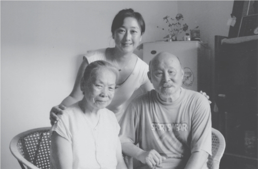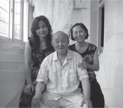 与长女李巧华(右一)、小女李桂华(左一)合影