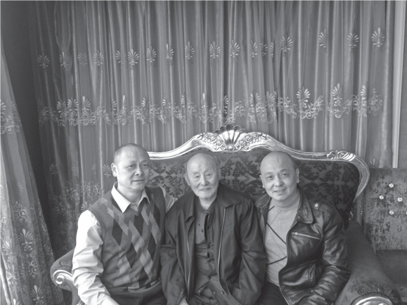 左起依次为:义子何天龙、何富海、徒弟杨逢春。