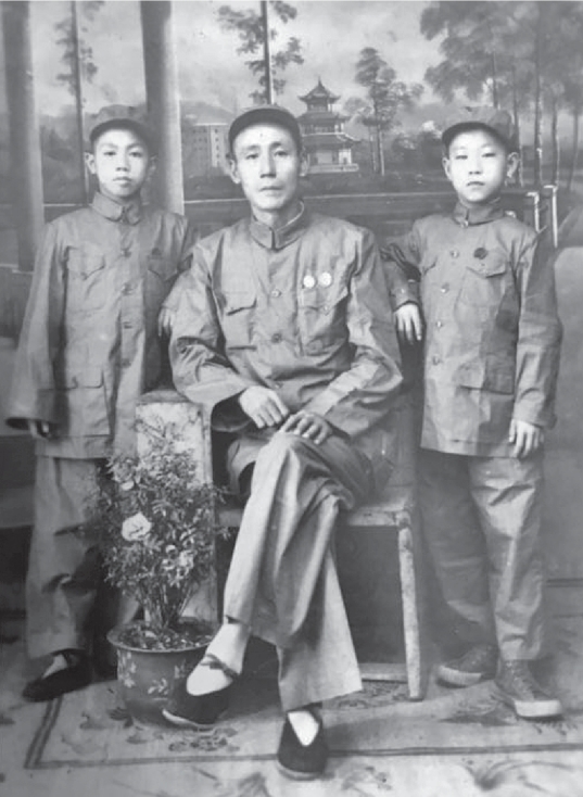 与长子李晋进(左一)、次子李三星(右一)合影(摄于2016年)