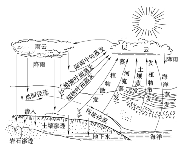 图1-1 自然界水循环示意图