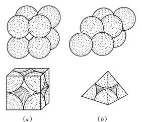 (a)立方体排列;(b)四面体排列